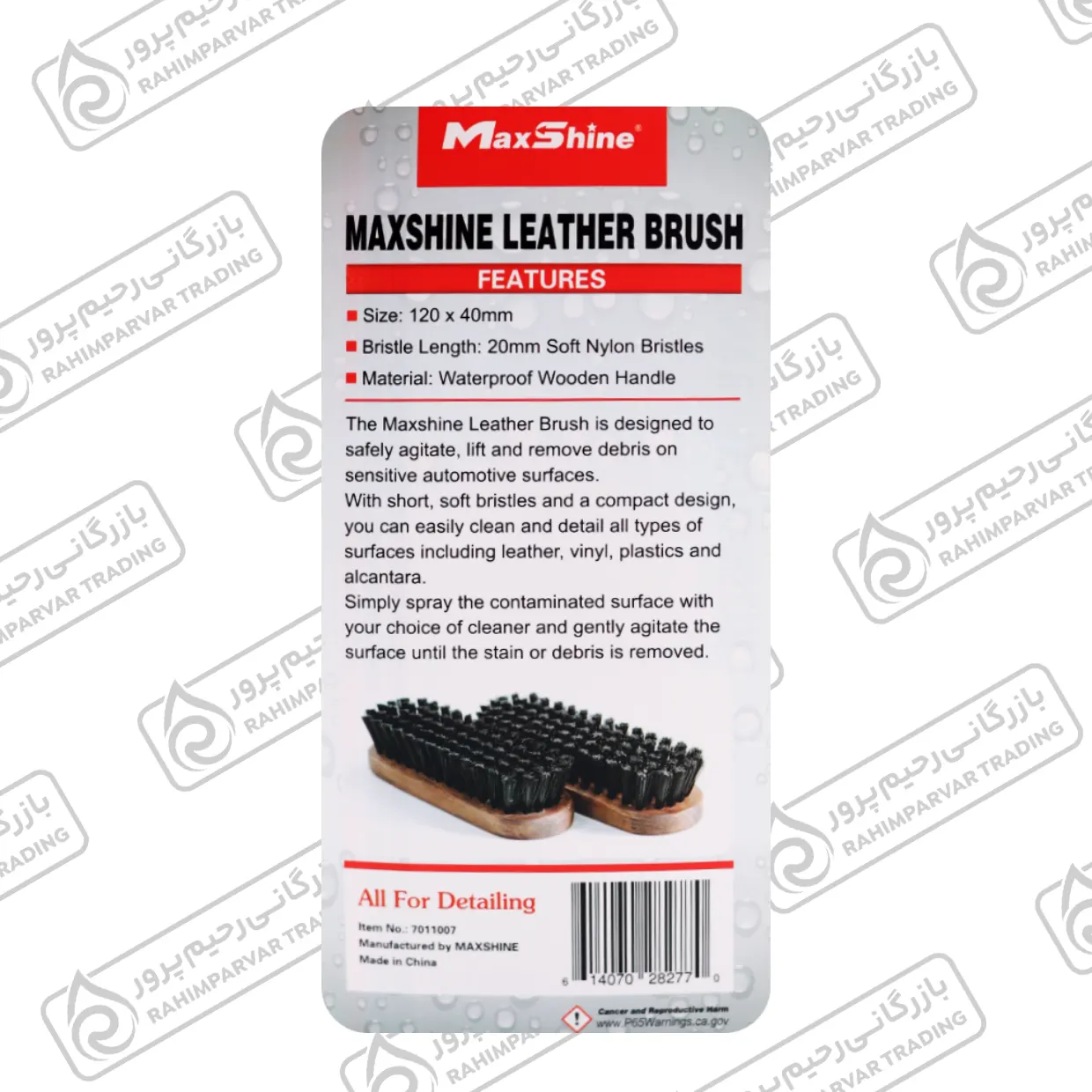 برس تخصصی تمیزکننده چرم و آلکانتارا مکس شاین | دسته چوبی ضد آب